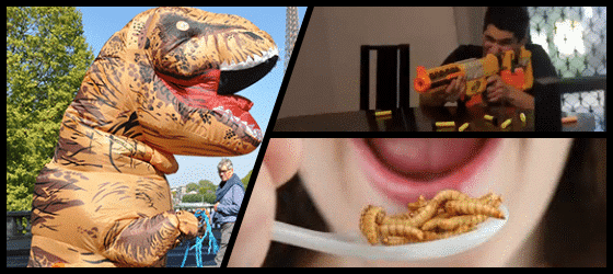 L’équipe d’Intripid vous réserve bien des surprises ! Votre soirée d’entreprise risque d’être très animée grâce à notre sélection de défis. Pour ceux qui aiment se dandiner, on vous propose de sortir vos meilleurs pas de danse. Le défi sera de le faire dans des costumes de T-Rex gonflables. Vous avez toujours eus l’âme d’un aventurier ? Alors, venez déguster notre assortiment de criquets, scorpions et autres insectes que tu ne vois que dans Koh-Lanta. Enfin, si tu as toujours voulu tirer sur tes collègues ou supérieurs, Intripid te confie ses armes de choix. Lors d’une bataille sans merci, tu devra brandir tes pistolets nerf et défendre ton camp ! L’équipe d’Intripid te réserve d’autres défis. Es-tu prêt à les relever ?