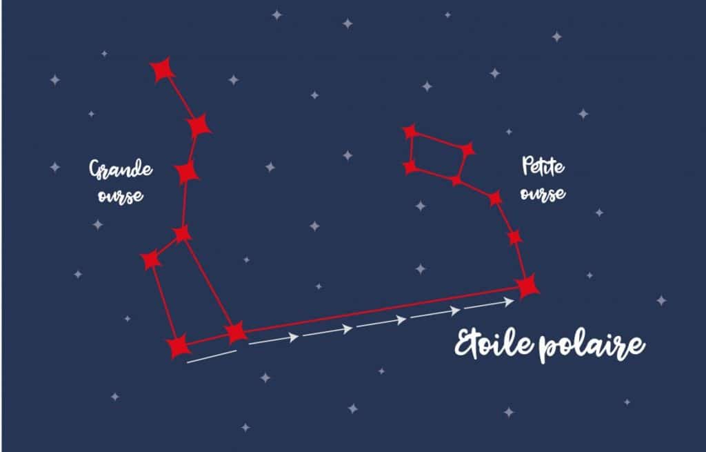 S’orienter de nuit : Si vous voulez vous déplacer la nuit vous pourrez vous orienter grâce aux étoiles. Pour cela, il faut que le ciel soit bien dégagé et si ce n’est pas le cas, trouver un endroit ou passer la nuit. L’étoile polaire est l’étoile à suivre si vous voulez avancer vers le Nord. Pour l’apercevoir, il suffit de trouver au préalable la Petite Ourse. L’étoile polaire est celle qui se trouve à l’extrémité du manche de cette constellation.